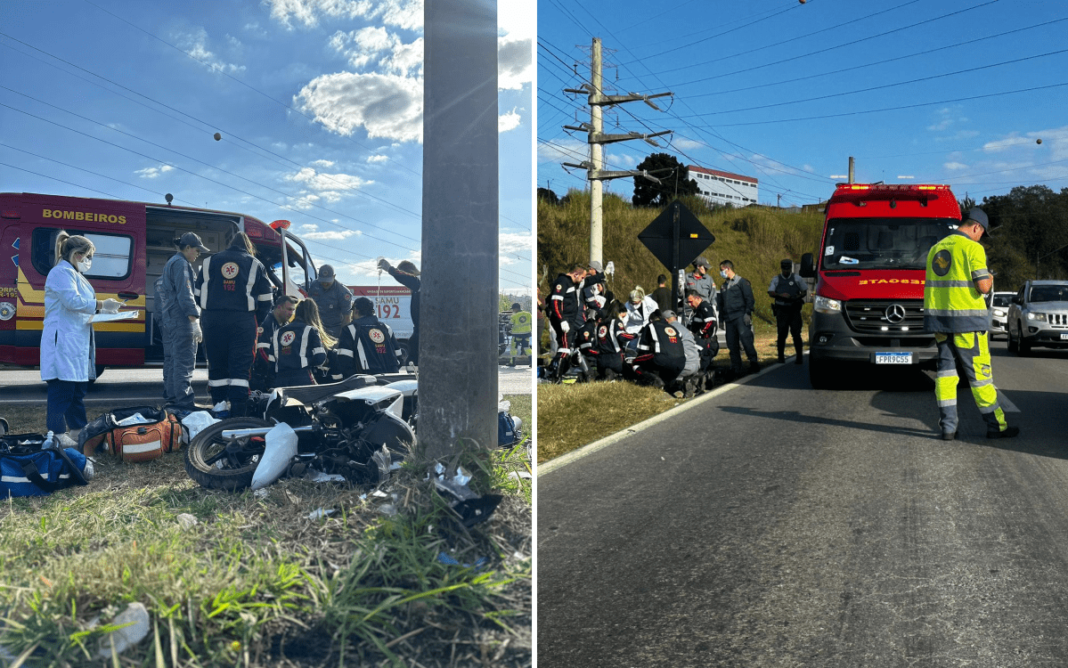 Equipes de motolâncias, do SAMU e do Corpo de Bombeiros foram prontamente acionados, assim como a Polícia Militar e a Rodoviária Estadual, para prestar socorro ao motociclista. Ele foi imediatamente encaminhado para o Hospital São Francisco, onde permanece em estado crítico.