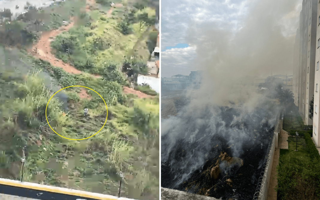Um homem foi flagrado por moradores ateando fogo em uma mata próxima a um bairro residencial e a uma escola em Bragança Paulista, nesta quinta-feira (04). O incêndio, considerado proposital, foi rapidamente controlado pelos bombeiros.