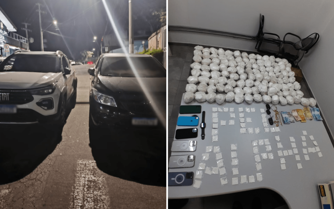 Durante as buscas nos veículos, foram encontrados 11.200 papelotes de cocaína e uma quantia total de R$ 631,00 em dinheiro. Além das drogas, foram apreendidos seis celulares, três anéis, três correntes, um bracelete e um smartwatch.
