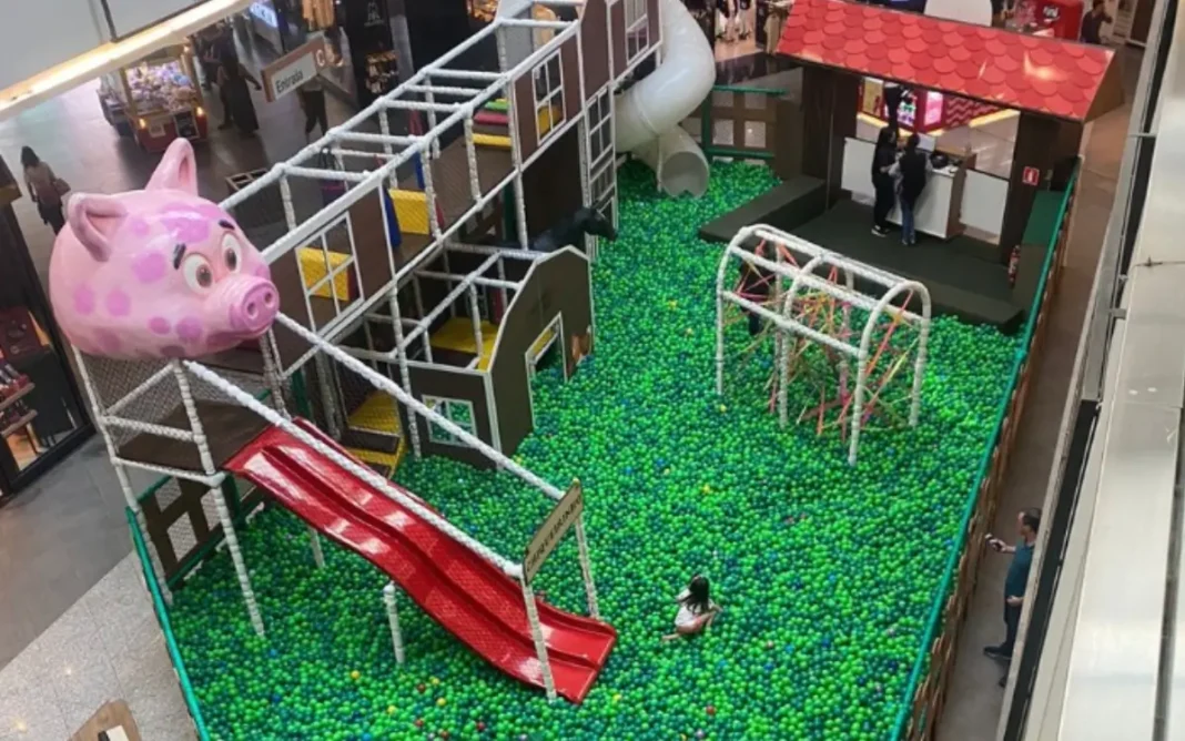 Com um percurso cheio de desafios, as crianças poderão explorar e “interagir” com diferentes ambientes da fazenda, além de se divertirem em uma gigante piscina de bolinhas.