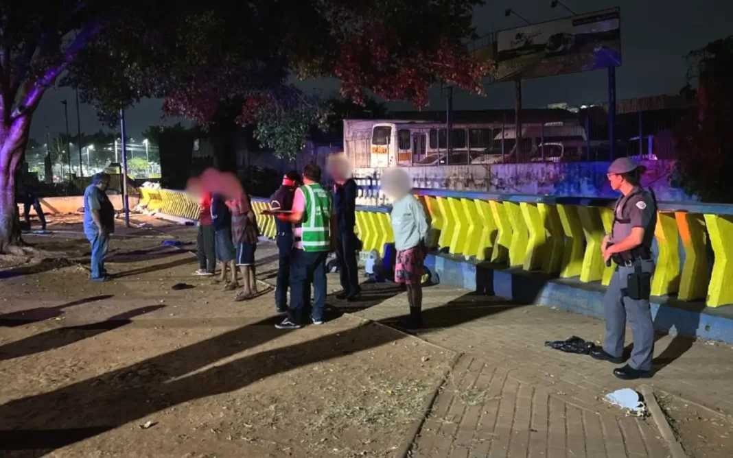 A ação envolveu equipes da Guarda Civil Municipal (GCM), Polícia Militar e as Secretarias Municipais de Ação e Desenvolvimento Social (SEMADS) e de Segurança e Defesa Civil.