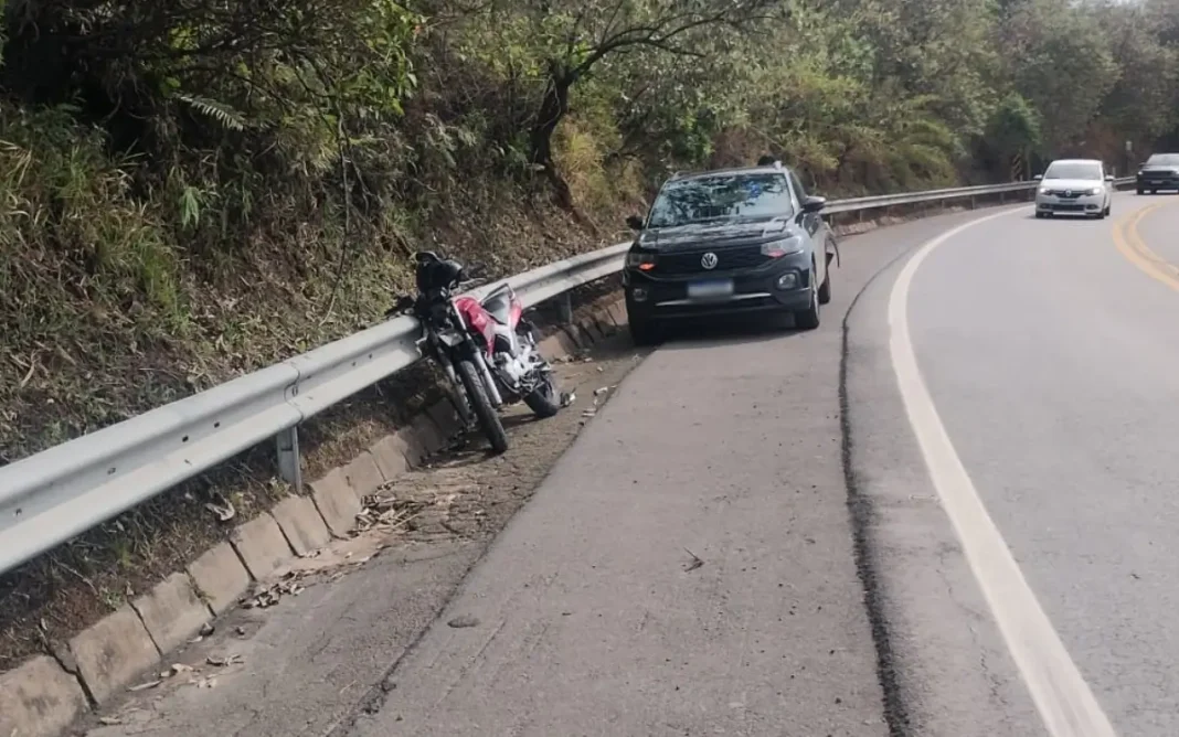 De acordo com informações, o condutor do T-Cross reduziu a velocidade ao se aproximar de um radar, momento em que a motocicleta não conseguiu frear a tempo e colidiu na traseira do carro, resultando no tombamento da moto.