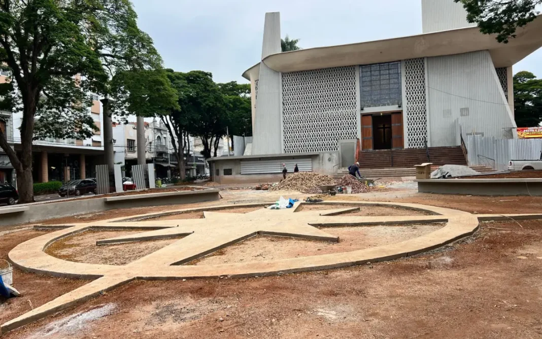 A obra já teve a primeira etapa, até o pergolado, finalizada e agora está na etapa final. O projeto total inclui a instalação de pedra portuguesa, execução de Rosa dos Ventos no piso, colocação de canteiros, postes com iluminação em LED, novos bancos, revitalização do pergolado, execução do espelho d’água e fonte.