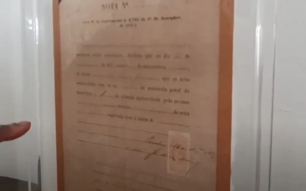 Um dos itens preservados no memorial é um “Atestado de Matrícula” para escravos, seguindo o decreto Nº 4.835 de 1871, sancionada por Dom Pedro II, que instaurava a obrigatoriedade de “registro de posse” do escravo ao proprietário.