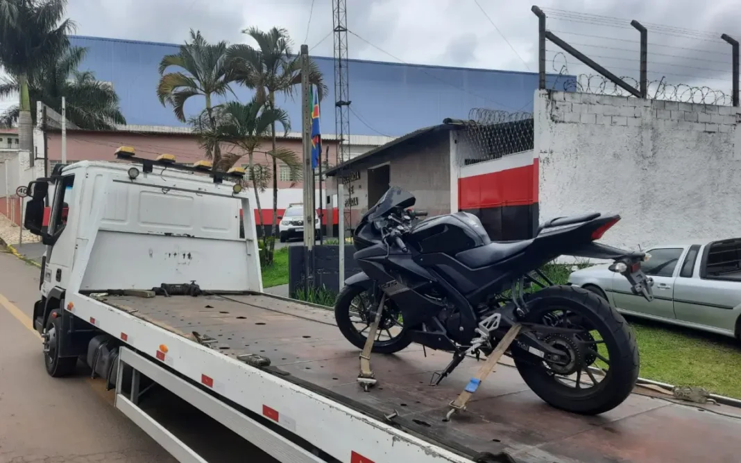 Ao averiguar a denúncia, a equipe localizou uma motocicleta com as características informadas dentro de uma garagem na Rua Uruguai, no Parque Hortênsia. O portão estava aberto, permitindo a visualização do veículo.