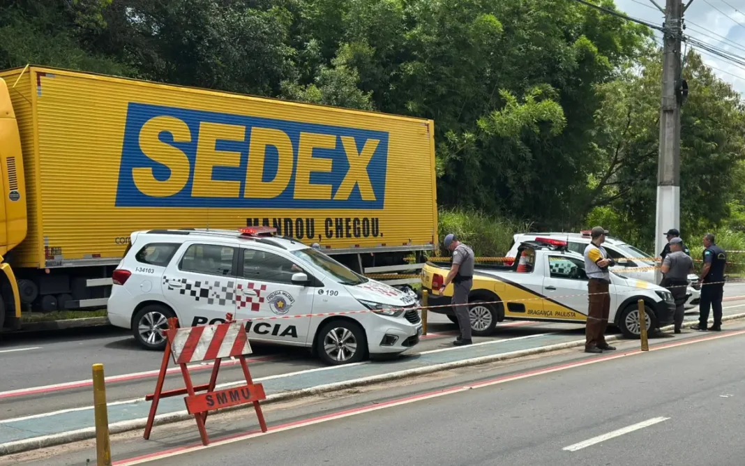 O caminhão, segundo o boletim, transitava pela avenida a cerca de 20Km/h e com o pisca-alerta ligado, porque o veículo apresentava um problema no câmbio.
