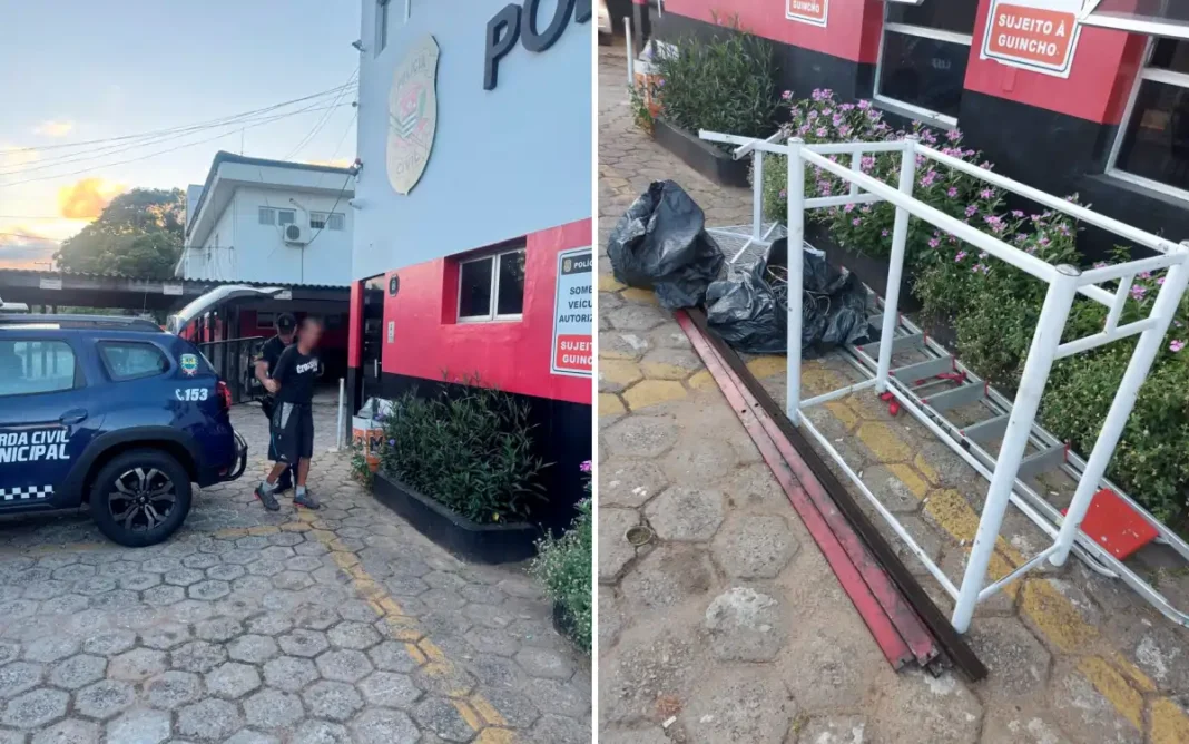 Durante a abordagem, M.S. negou ter praticado furto e alegou ter encontrado os objetos abandonados na Praça da Bíblia, com a intenção de vendê-los em um ferro-velho. No entanto, um estabelecimento próximo foi encontrado com a porta danificada, e objetos no interior do comércio eram semelhantes aos que estavam com o suspeito.