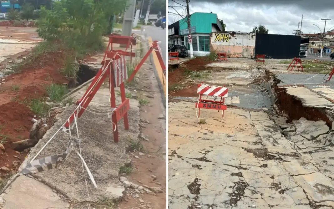 Motoristas e pedestres devem redobrar a atenção ao passar pelo trecho, pois o risco de colapso aumenta a cada dia devido às chuvas e ao peso dos veículos que circulam na região.