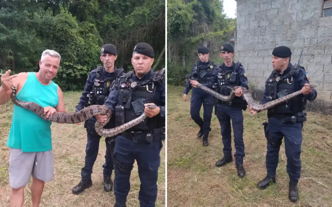 A Guarda Civil Municipal (GCM) foi acionada por volta das 15h para recolher o animal. Ao chegarem, os agentes encontraram a jiboia cercada por vários moradores que acompanhavam a situação.