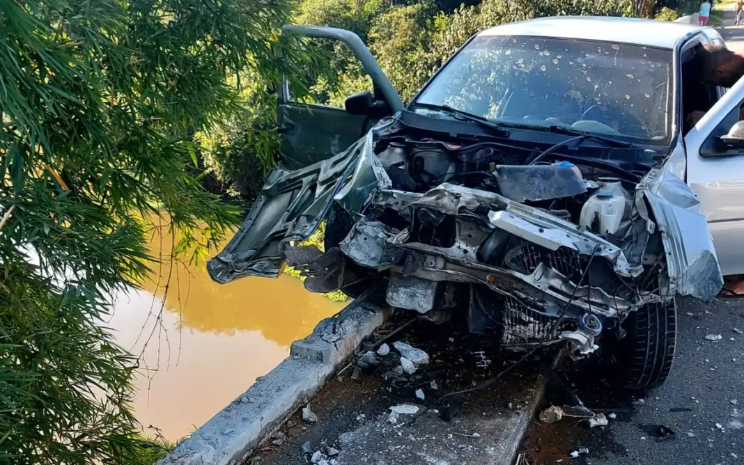 Um motorista de um Volkswagen Gol prata perdeu o controle do veículo após ser fechado por outro carro e colidiu contra a mureta da ponte sobre o Rio Jagari, no bairro Mãe dos Homens, na Rodovia Benevenuto Moretto. Com o impacto, uma passageira foi arremessada para dentro do rio.