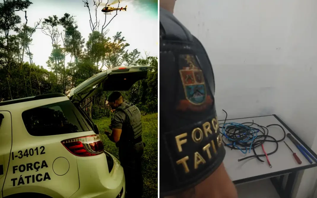A ação ocorreu após o Centro de Operações da Polícia Militar (COPOM) irradiar a ocorrência de furto em andamento no local. As equipes de Força Tática cercaram a área, conseguindo deter ambos em flagrante pelo furto de fios.