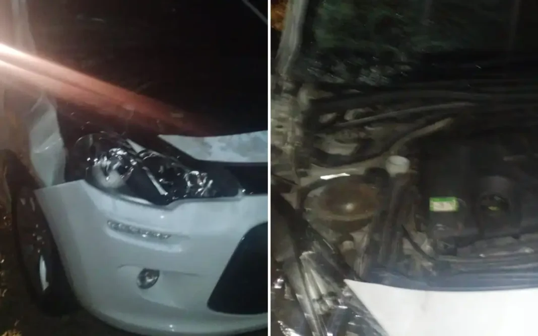 O condutor do Citroën C3 branco seguia pela rodovia quando foi surpreendido pelo animal e, sem tempo para frear, acabou atingindo-o.