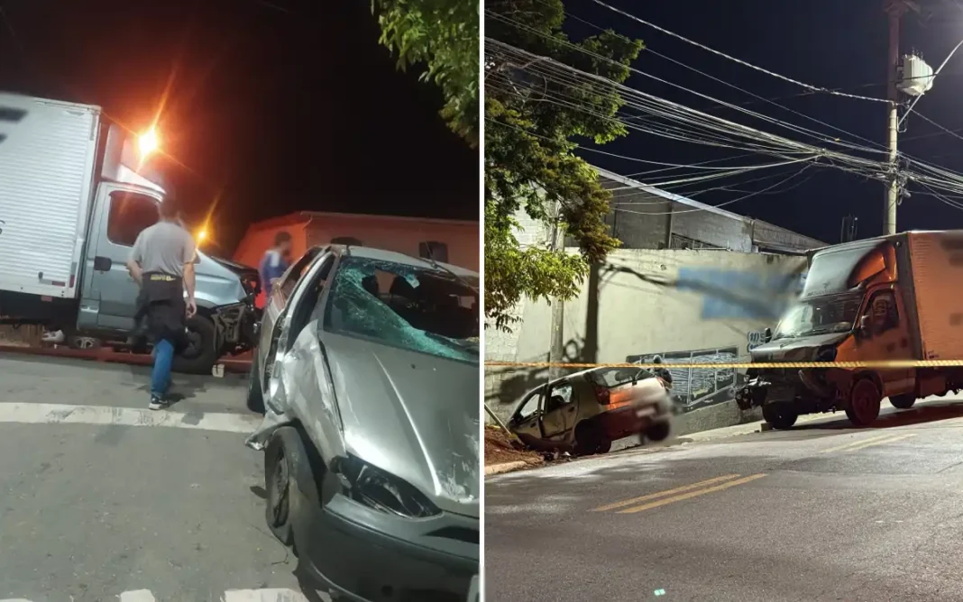 Na noite desta quinta-feira (17), um acidente envolvendo um carro e um caminhão foi registrado na avenida Alziro de Oliveira, bairro Hípica Jaguari. De acordo com as informações preliminares, o caminhão era conduzido apenas pelo motorista, enquanto no carro estavam duas crianças e um casal.