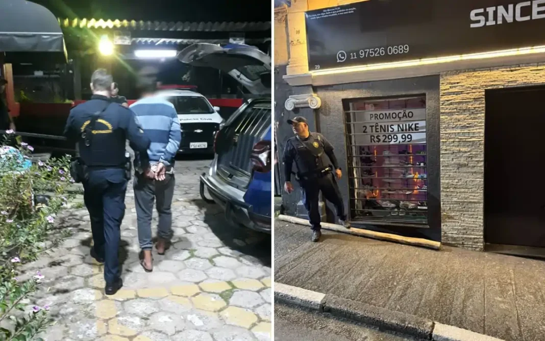 A ação foi desencadeada após o Centro de Comunicação Operacional (CCO) receber uma denúncia sobre dois homens tentando invadir o estabelecimento “Since 1990”. Um dos suspeitos foi descrito com um cobertor sobre os ombros.
