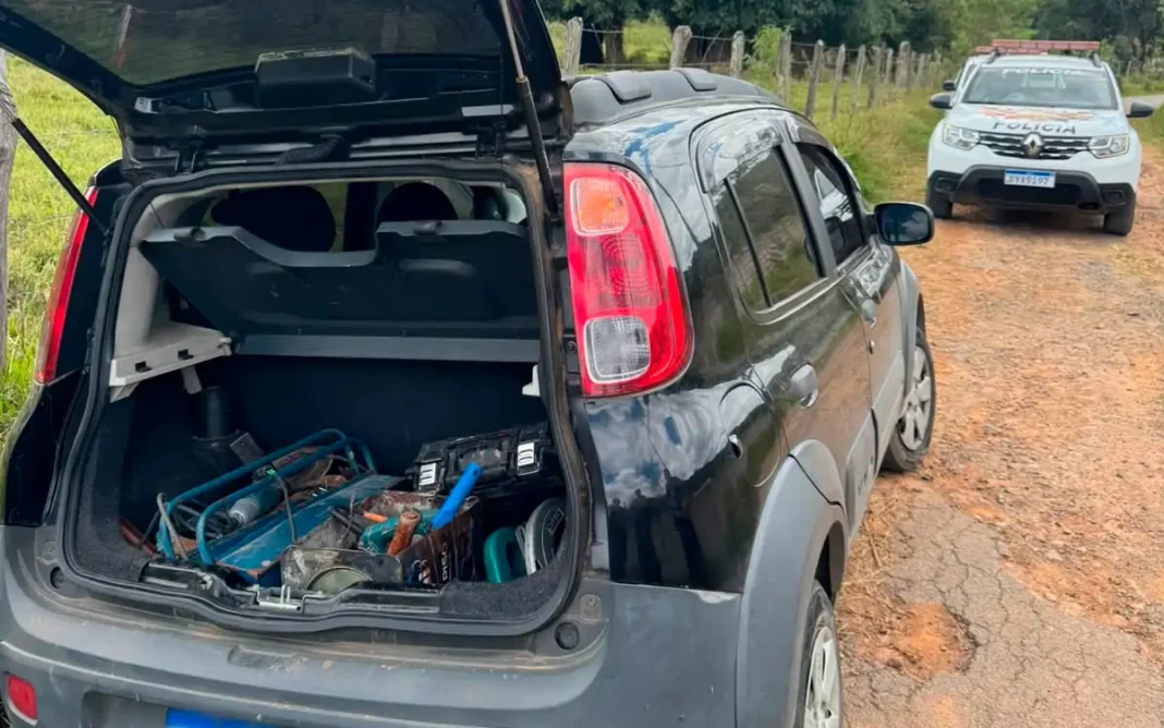 Cerca de 400 metros à frente, as equipes localizaram o veículo Fiat Uno, que constava como produto de furto ocorrido na mesma data. No interior do automóvel, foram encontradas diversas ferramentas.