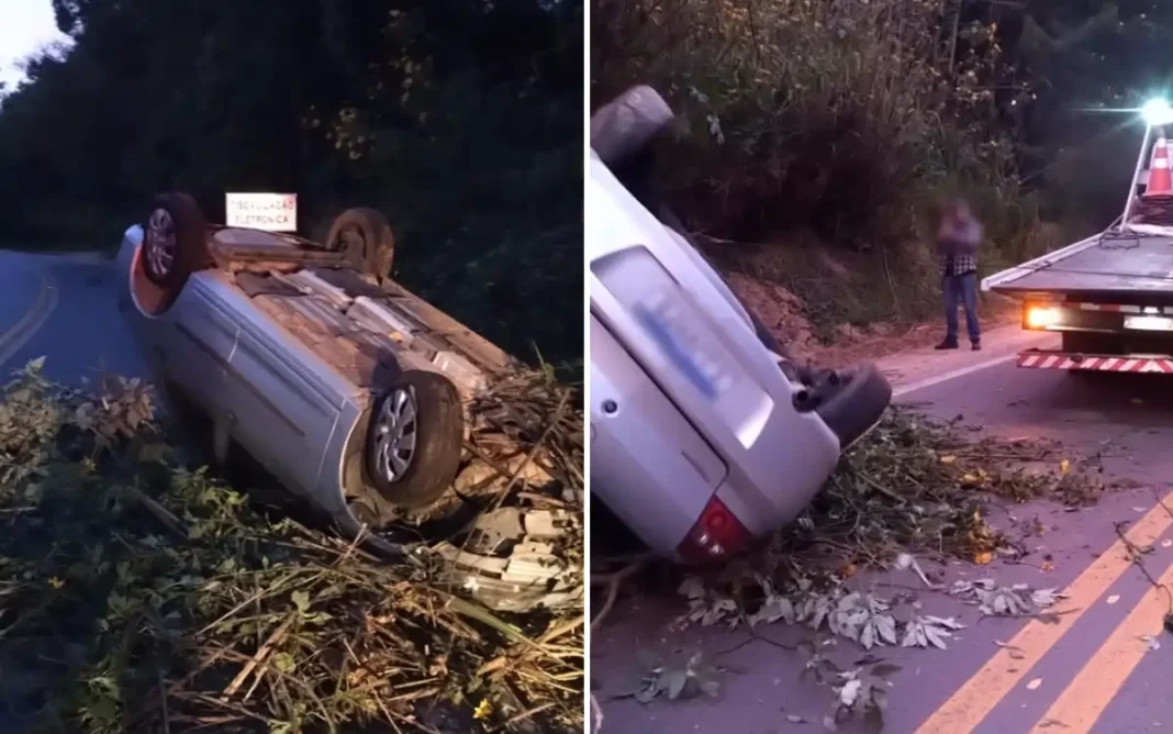 Na manhã deste domingo (15), um motorista perdeu o controle de seu veículo, um Chevrolet Prisma prata, e capotou na Rodovia Capitão Barduíno, na altura do km 119, em Pinhalzinho.