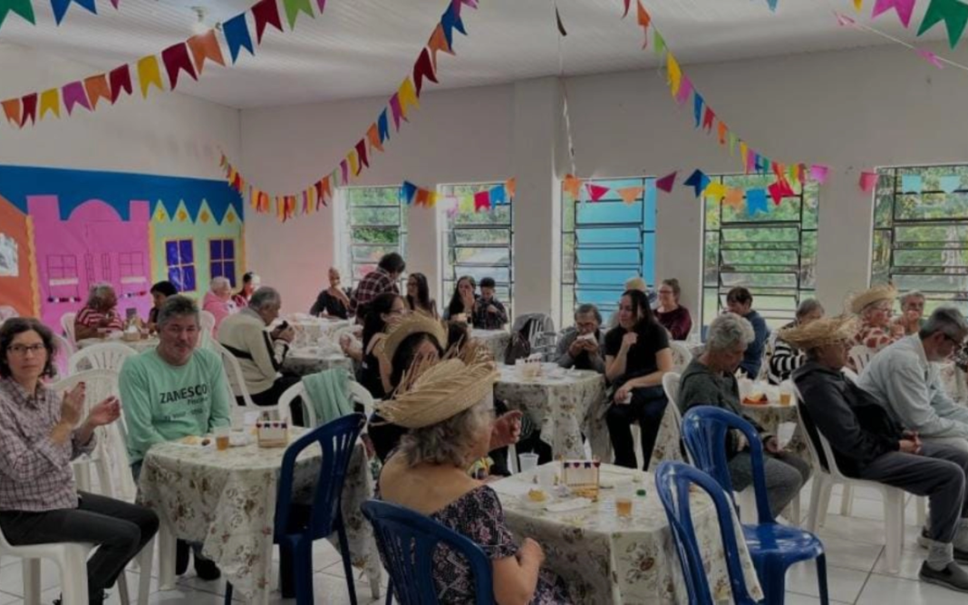 Com apresentação do músico Irineu Granconato Júnior, o forró e a moda de viola embalaram o encontro, que teve direito a pipoca feita na hora — com o cuidado e carinho da querida Tia Renata — e uma variedade de quitutes juninos preparados com atenção aos detalhes que fazem diferença na rotina dos idosos.