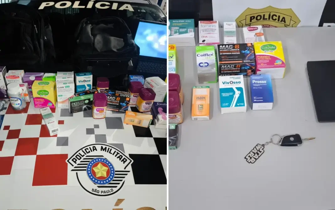 Nas proximidades do km 40 da rodovia, o veículo foi localizado e abordado. Dentro estavam três ocupantes, dois deles estrangeiros. Durante a vistoria, foram encontrados diversos itens de procedência suspeita, como notebook, roupas, celulares, frascos de medicamentos e suplementos. Nenhum dos indivíduos soube justificar a origem dos materiais.