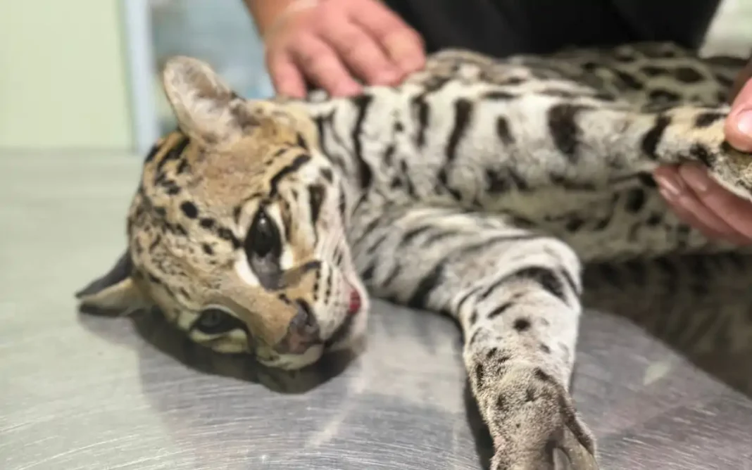 Uma jaguatirica morreu na noite de domingo (29) após ser atropelada em uma estrada de Amparo (SP).