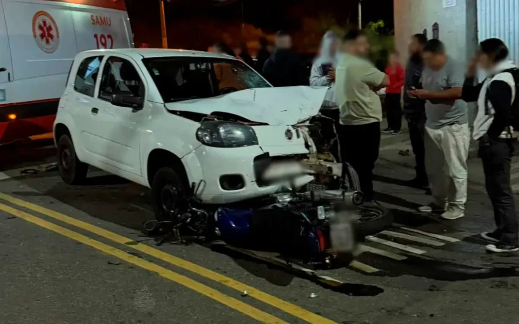 Na noite desta terça-feira (1º), um acidente de trânsito envolvendo uma motocicleta e um carro foi registrado na Rua Luiz Carlos Bonucci Filócomo, no bairro Hípica Jaguari, em Bragança Paulista.
