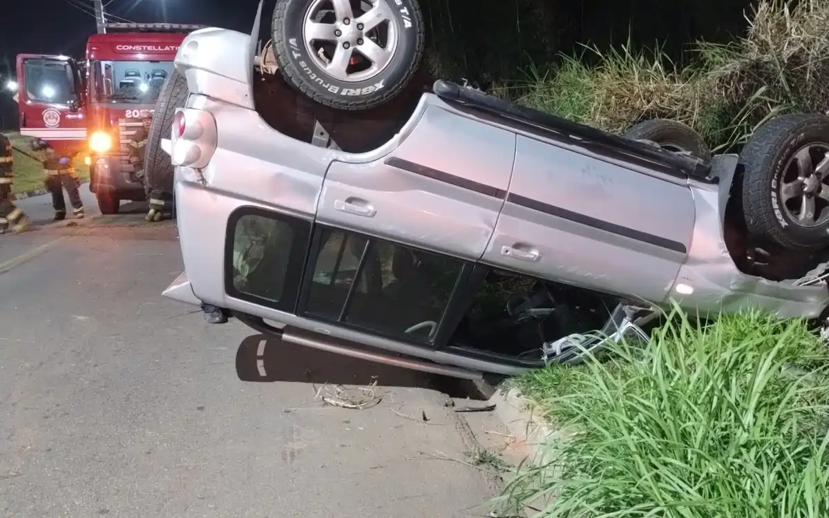 O veículo atravessou a pista contrária, rompeu o guard rail e capotou na rua Sergipe, no bairro Jardim São Miguel.