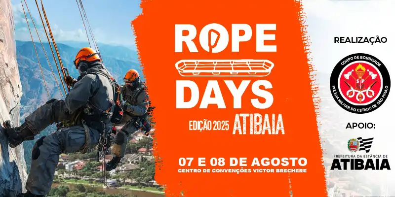 Bombeiros de todo o Brasil e da América do Sul estarão em Atibaia nos próximos dias 7 e 8 de agosto para o Rope Days, evento de destaque da América Latina na área de salvamento em altura. A população pode acompanhar as atividades e a cerimônia de abertura, que acontece nesta quinta-feira, dia 7 de agosto, às 8h, na arena do Centro de Convenções “Victor Brecheret”.