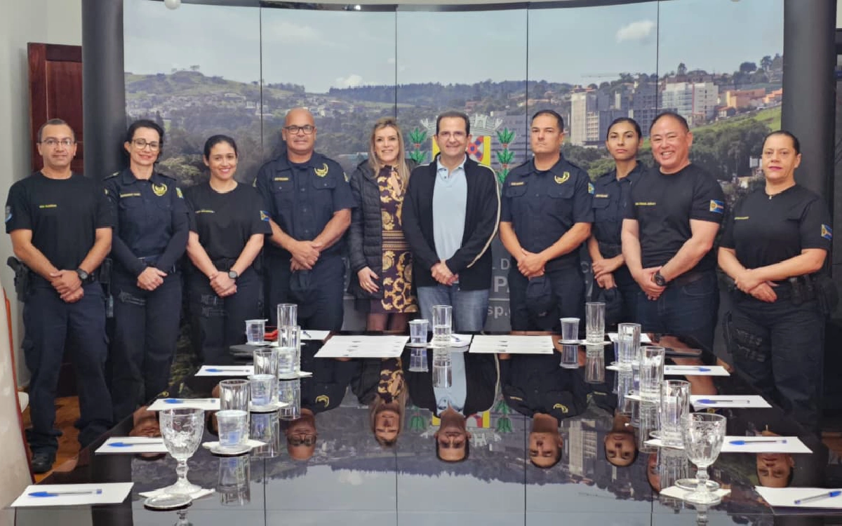 A cerimônia ocorreu no Gabinete Municipal e contou com a presença do prefeito Edmir Chedid, da vice-prefeita Gi Borboleta, do secretário de Segurança e Defesa Civil, Coronel Américo Higuti, além de integrantes do comando da GCM.