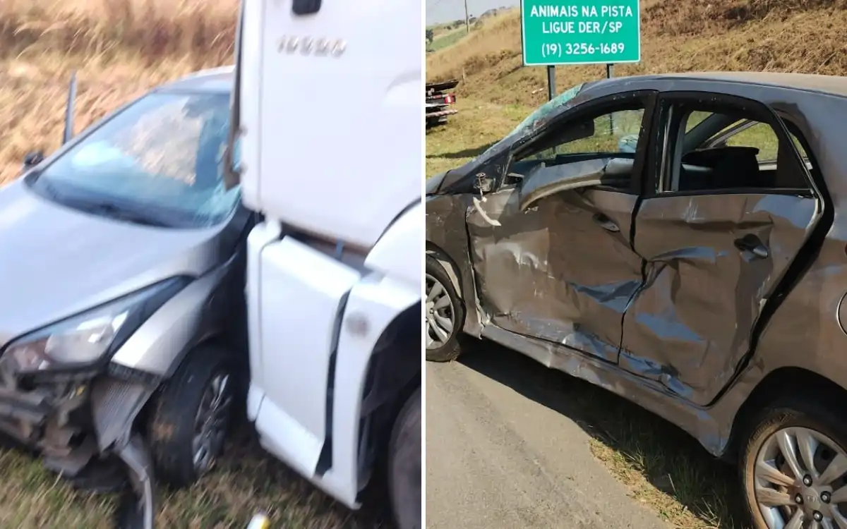 Os veículos envolvidos na colisão foram um Hyundai HB20, um Honda City e um caminhão VW Tractor.