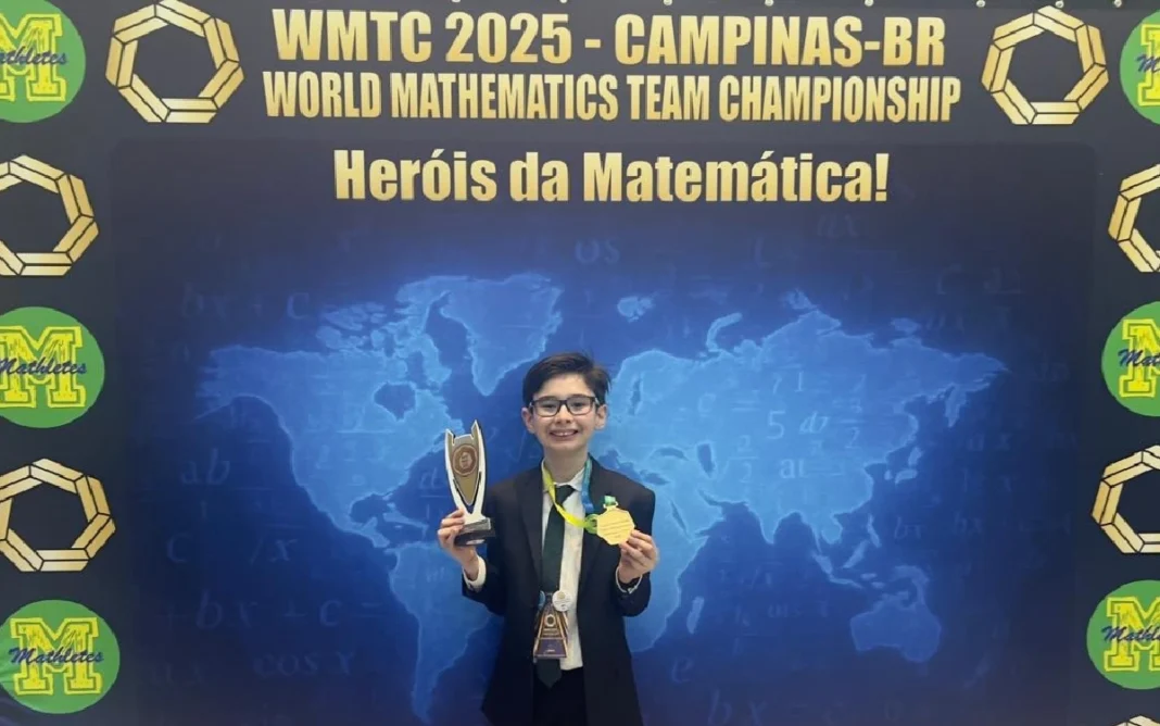 O jovem Theo Cesar Hespanhol Garcia, de apenas 10 anos, conquistou medalha de ouro na WMTC (World Mathematics Team Championship), realizada no último final de semana na Universidade Estadual de Campinas (Unicamp).