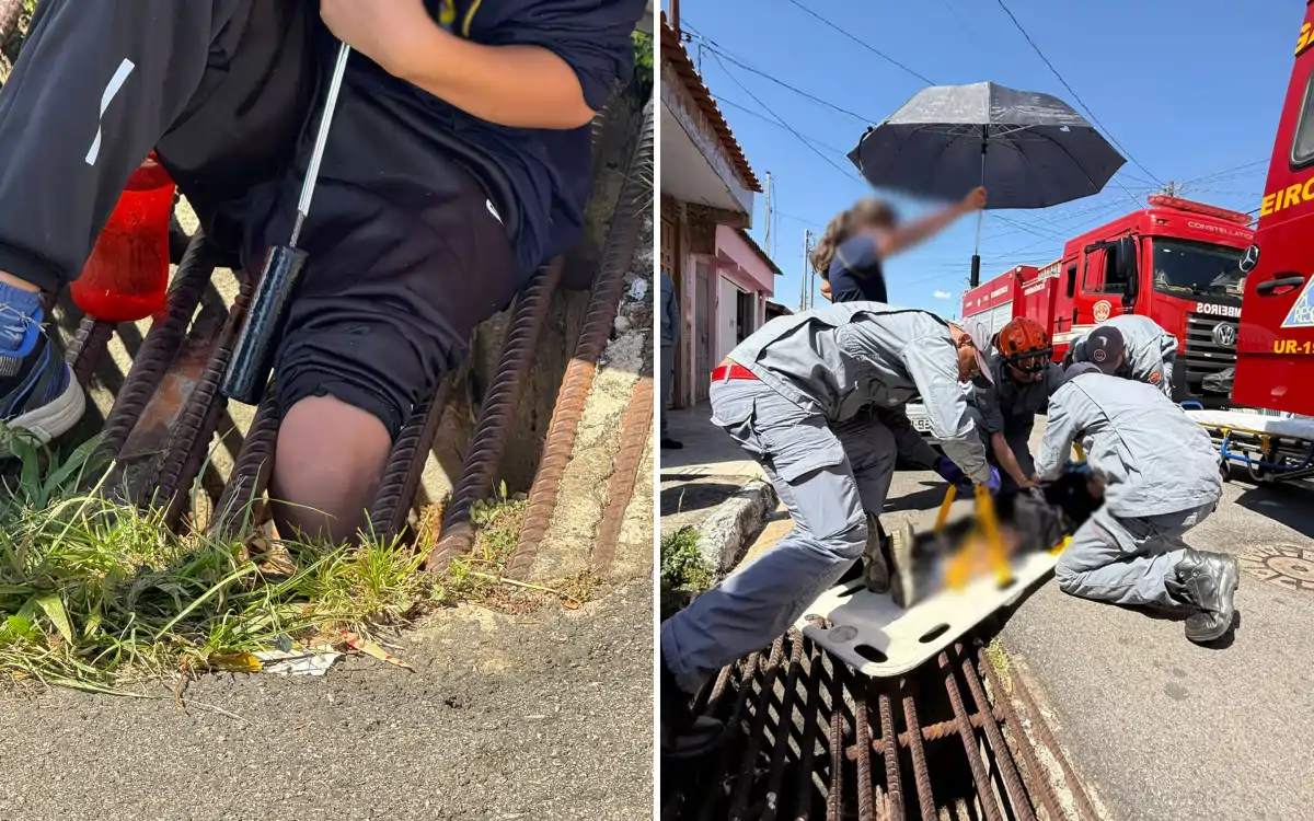 O Corpo de Bombeiros foi acionado e realizou o resgate com rapidez, retirando a perna da vítima do bueiro. A criança foi encaminhada à UPA Vila Davi com ferimentos leves.