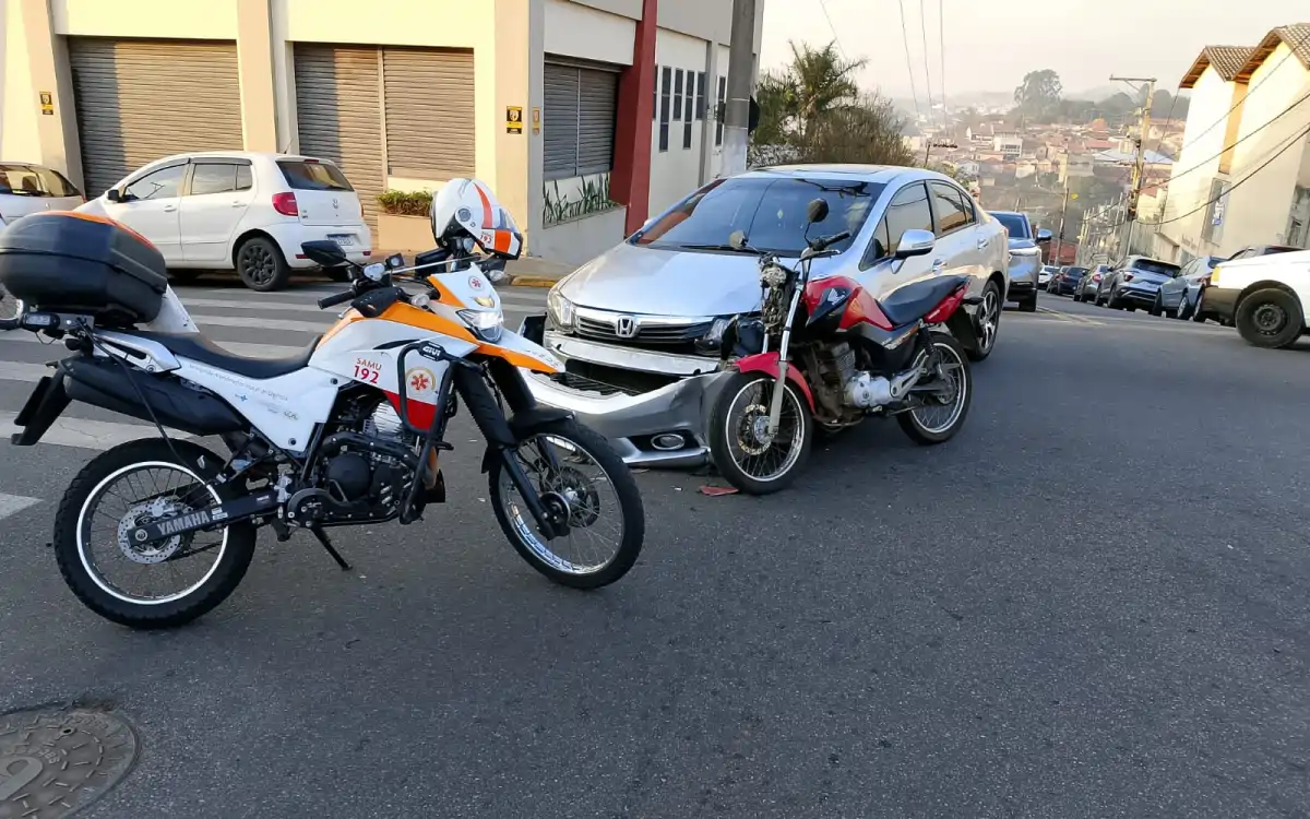 Na tarde desta sexta-feira, uma colisão entre um carro e uma motocicleta foi registrada no cruzamento das ruas Arthur Bernardes com a Rua Wenceslau Brás, no bairro Vila Municipal, em Bragança Paulista.