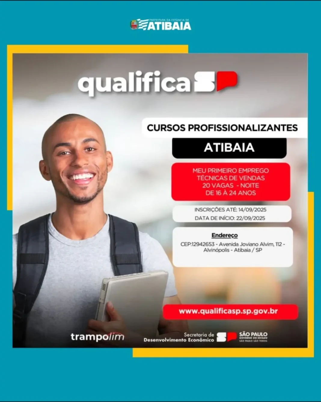 Se você está em busca do primeiro emprego, o curso Técnicas de Vendas, ofertado pelo Qualifica SP (Meu Primeiro Emprego), em parceria com a Prefeitura de Atibaia, por meio da Secretaria de Desenvolvimento Econômico (Departamento de Emprego e Renda), pode ser uma excelente opção para formação profissional.
