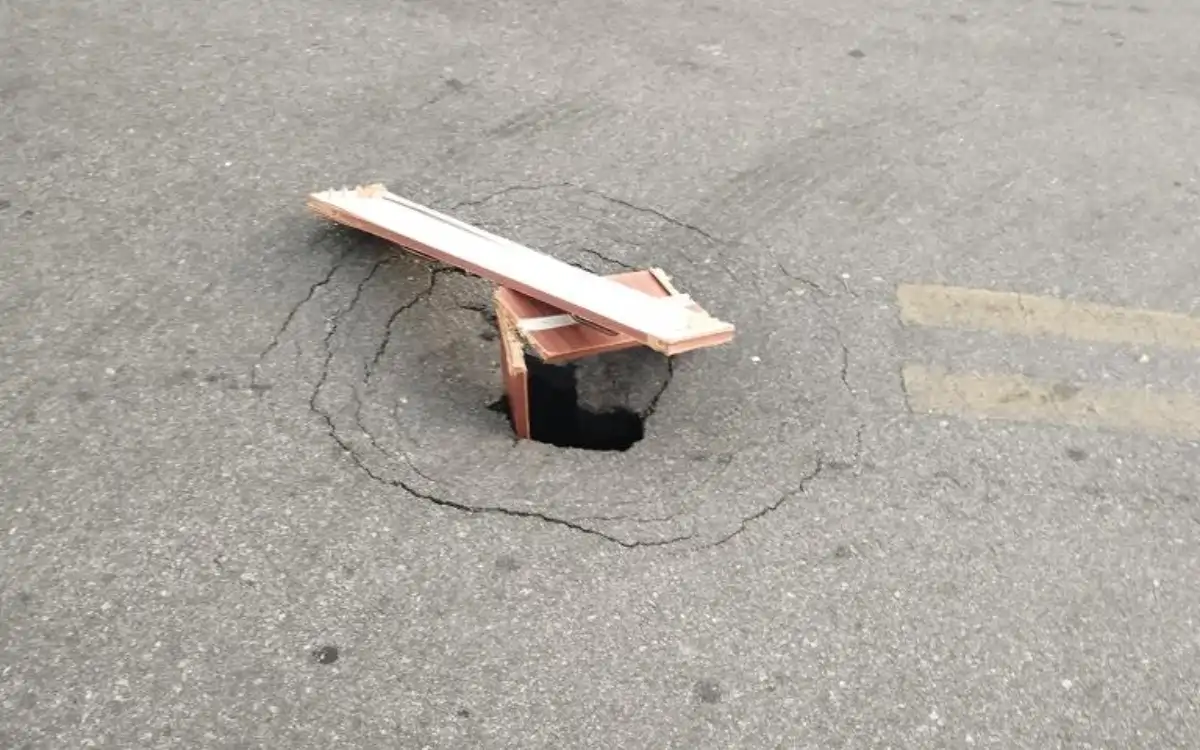 Segundo relatos, o solo cedeu e a situação tem se agravado com o passar dos dias. Com receio de acidentes, os próprios moradores improvisaram uma sinalização no local, utilizando um pedaço de madeira para alertar motoristas e pedestres.