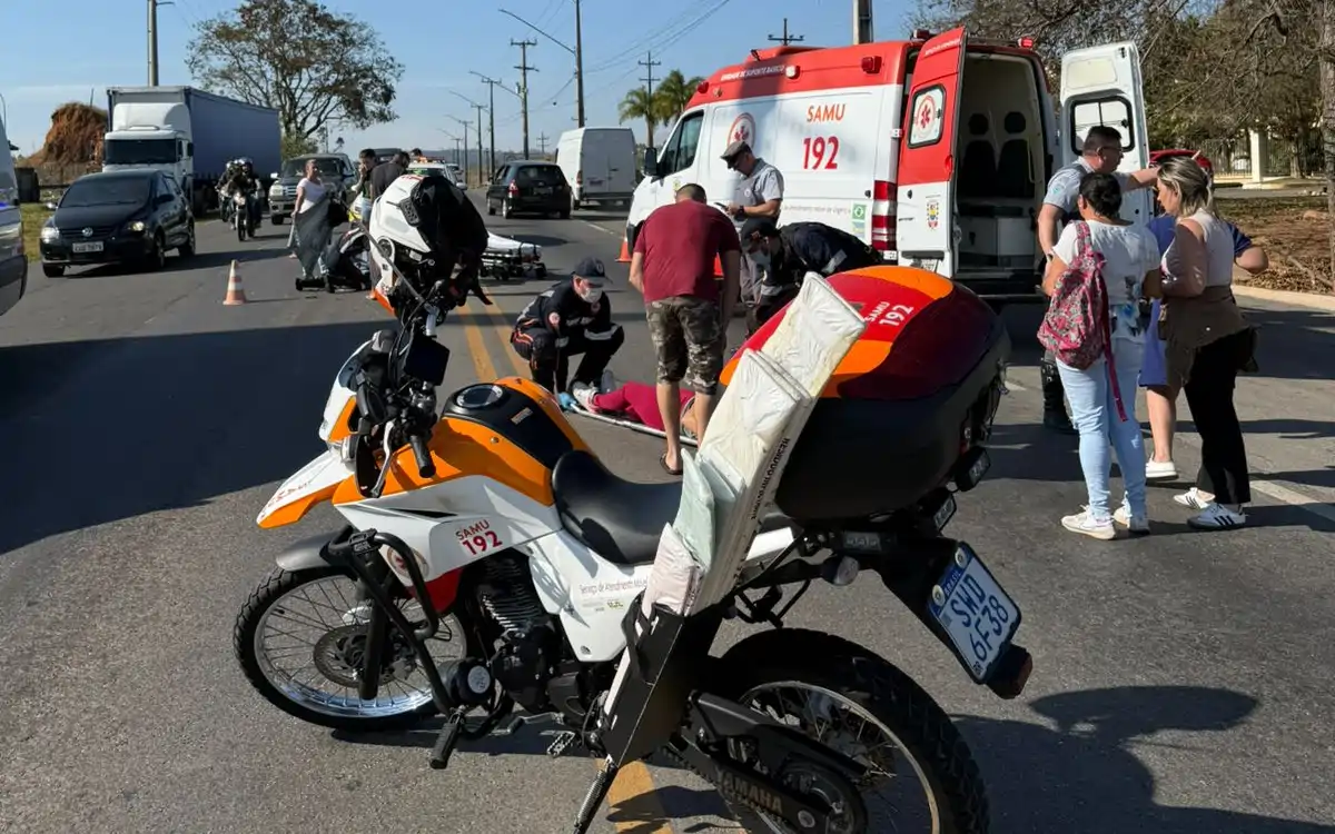 Segundo as autoridades, tanto a pedestre quanto o motociclista sofreram ferimentos leves.