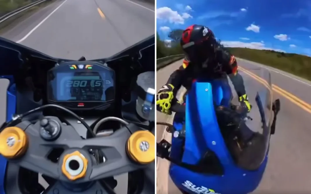 O motociclista que foi flagrado fazendo manobras perigosas a 280 km/h em um trecho da Rodovia Benevenuto Moretto (SP-095), entre os quilômetros 30 e 34, no município de Amparo, foi identificado pela Polícia Rodoviária. As imagens, que viralizaram nas redes sociais, mostram o condutor realizando ações arriscadas, como soltar as mãos do guidão, manusear uma câmera enquanto pilotava e trafegar pela contramão em uma via onde a velocidade máxima permitida é de 60 km/h.
