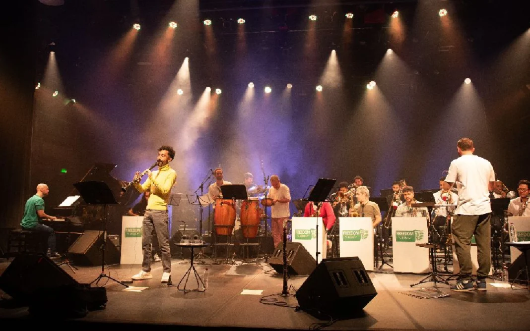 A Freedom Big Band, formada por 18 músicos — muitos oriundos da Orquestra Jovem Tom Jobim —, traz arranjos elaborados sob a regência do maestro Paulo Serau. A apresentação conta ainda com participações de Teco Cardoso (saxofone), Caetano Brasil (clarinete) e Ari Colares (percussão), proporcionando uma experiência musical completa e de alto nível artístico.