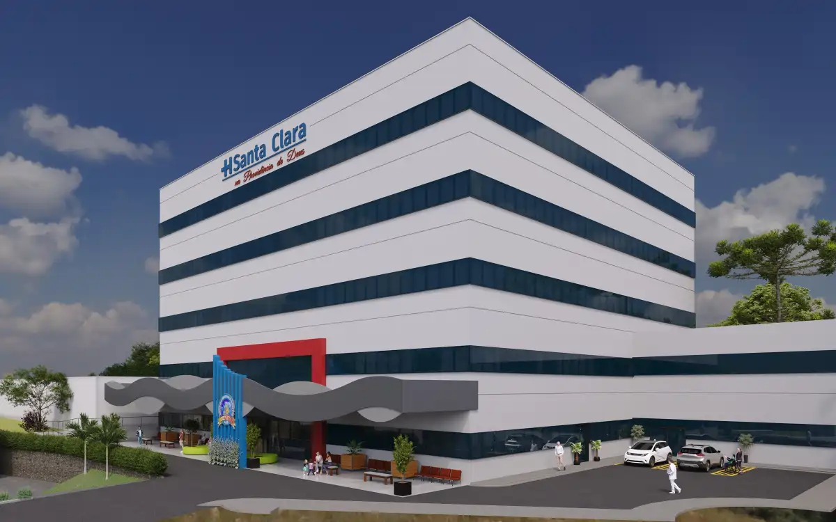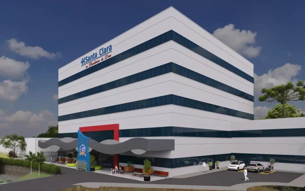 O Hospital Santa Clara contará com 7.331 m² e capacidade para comportar 150 leitos de internação, colaborando para o reequilíbrio da rede hospitalar na Região Bragantina