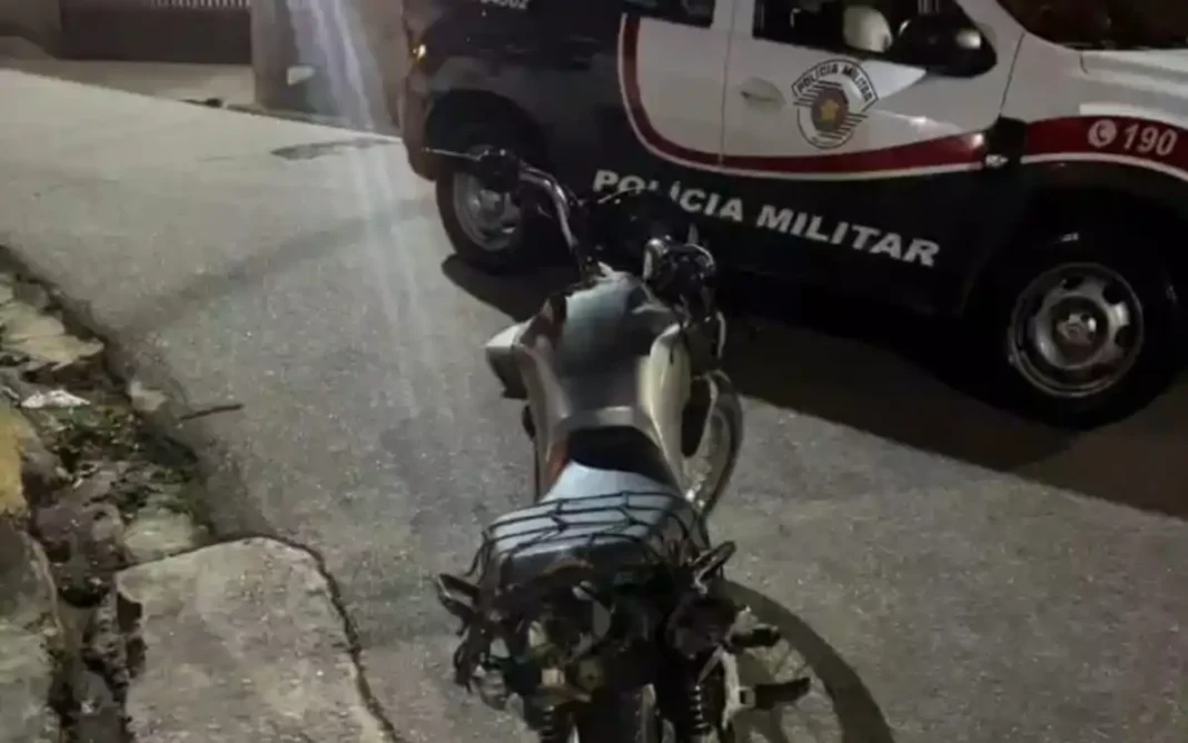 Na averiguação, os policiais constataram que a motocicleta estava sem placa e apresentava sinais identificadores suprimidos, como motor e chassi, além de o condutor não possuir permissão ou habilitação para dirigir.