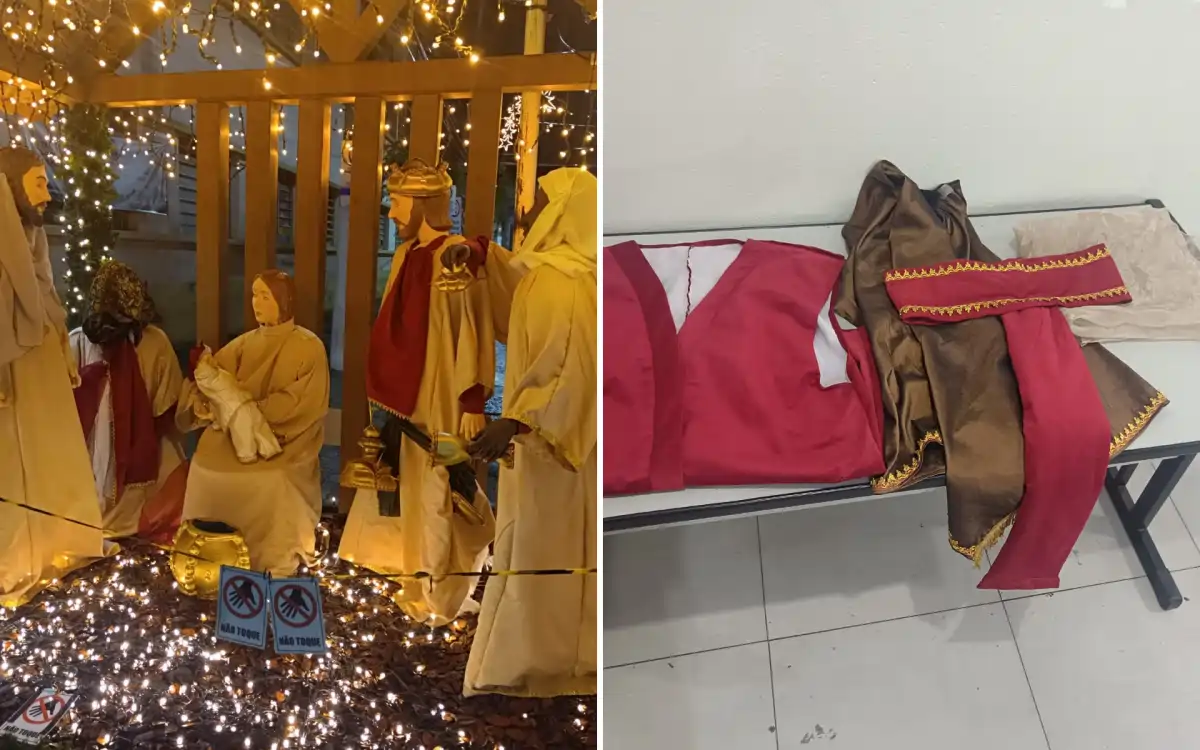 Na noite da última quinta-feira (1), a Guarda Civil Municipal de Bragança Paulista foi acionada para atender uma ocorrência inusitada: um homem foi flagrado danificando o presépio de Natal instalado em frente ao Mercado Municipal, no Centro da cidade. O suspeito retirou roupas de um dos personagens e fugiu com os objetos.
