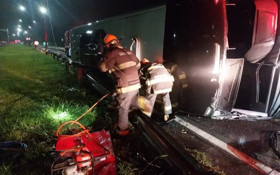 Um acidente de trânsito com vítima fatal foi registrado na noite desta quinta-feira (1º), no Km 08 da rodovia Fernão Dias, em Vargem, São Paulo. O incidente envolveu o tombamento de um ônibus fretado que transportava seis funcionários, incluindo o motorista, que saíram de Bragança Paulista com destino a uma empresa em Extrema (MG).
