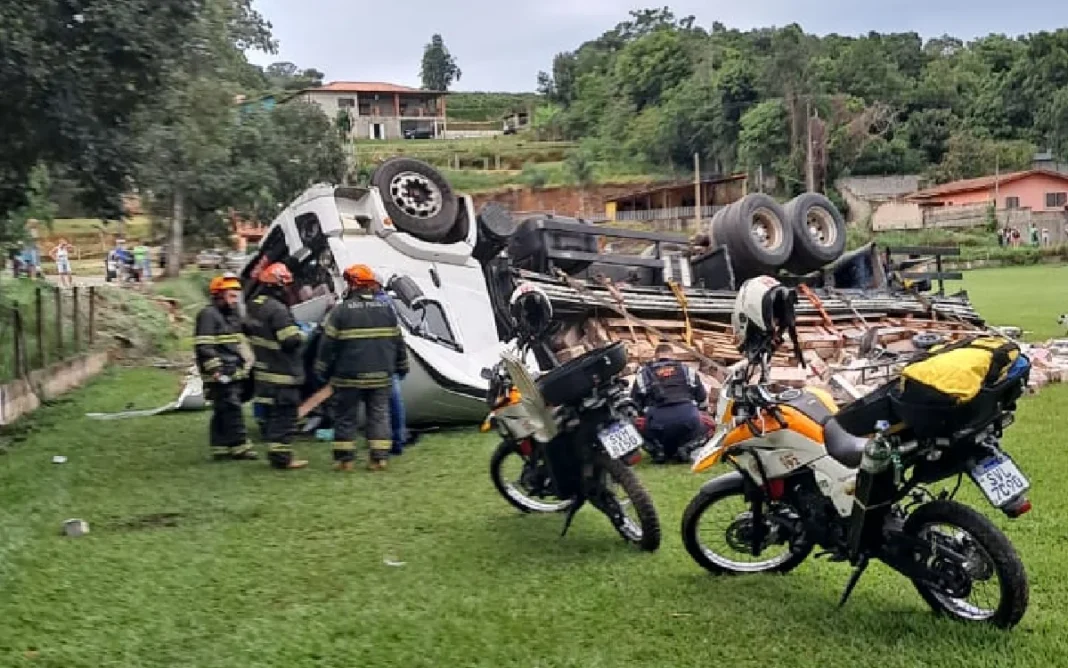 Um caminhão tombou dentro do Campo do Bacci na tarde desta quarta-feira (14), no bairro Bom Retiro dos Bacci, zona rural de Bragança Paulista. O acidente ocorreu enquanto o veículo descia a estrada que passa pela lateral do campo.