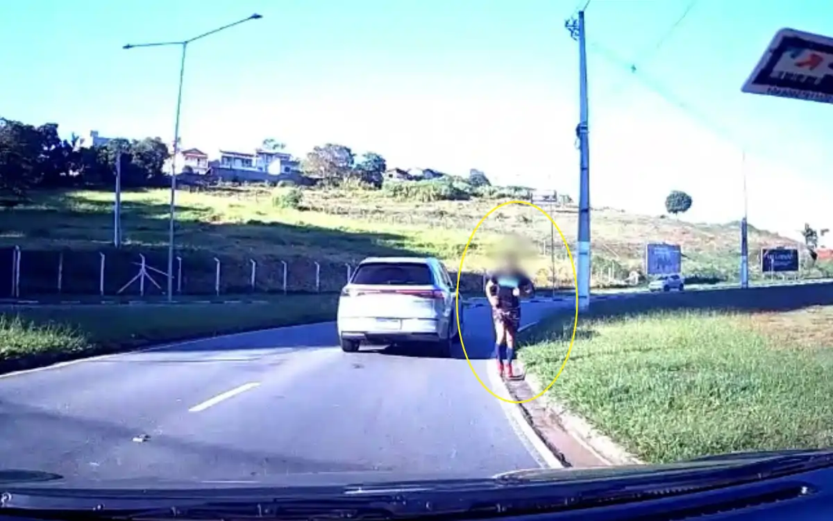 O motorista acionou a buzina para alertar o corredor, que respondeu com gestos obscenos. Apesar da situação de risco, não houve colisão. O episódio reforça a importância de atenção redobrada por parte de motoristas e pedestres, especialmente em trechos com grande fluxo de veículos e curvas perigosas.
