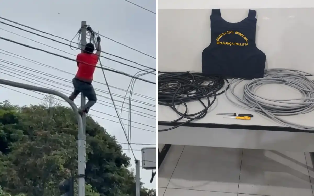 Um homem foi preso em flagrante na tarde desta terça-feira (11) após furtar cabos de um semáforo no cruzamento da Avenida dos Imigrantes com a Avenida Antônio Sabella, em Bragança Paulista.