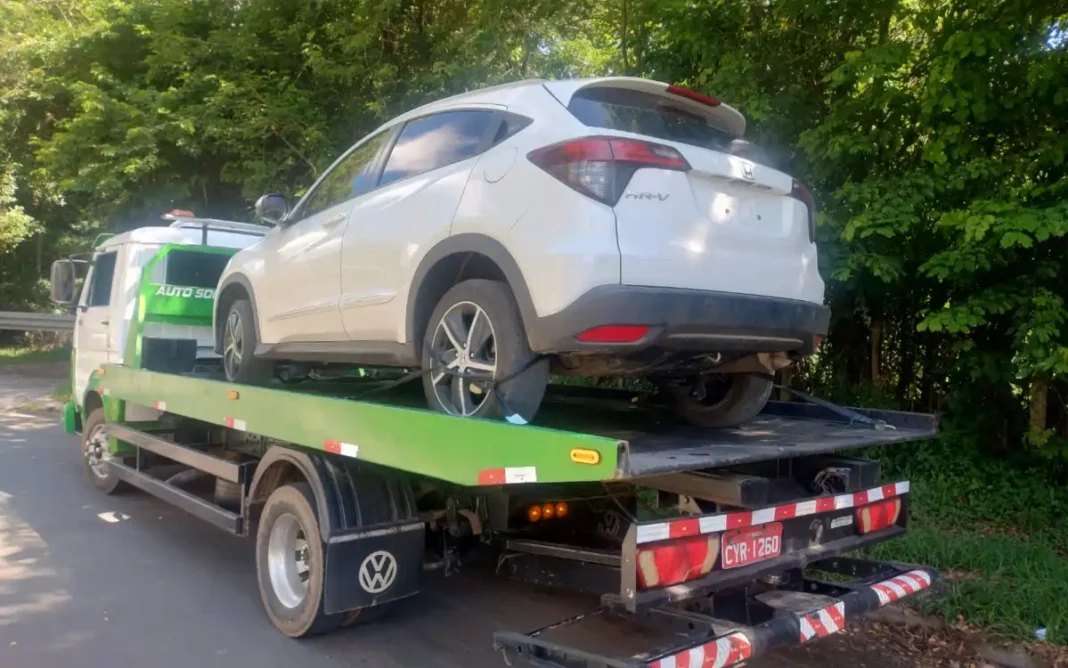 Na vistoria veicular, os policiais constataram indícios de adulteração nos sinais identificadores. Após verificação pelo número do chassi, foi confirmado que se tratava de um veículo furtado no ano passado, na capital paulista, configurando um caso de “veículo dublê”.