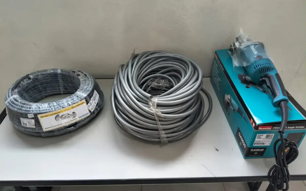Durante patrulhamento pelo município, os policiais avistaram o indivíduo nas proximidades da loja de ferramentas Ferramentas Fernão Dias, colocando uma esmerilhadeira e outros produtos no porta-malas de um veículo. Diante da situação, a equipe realizou a abordagem.
