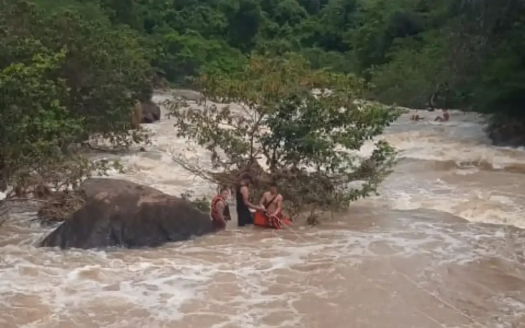 De acordo com as informações, o caso foi registrado por volta das 11h, quando as vítimas acessaram uma área rochosa às margens do rio e acabaram sendo surpreendidas por uma tromba d’água, fenômeno que provoca a rápida elevação do nível da água e pode colocar em risco quem está próximo ao leito do rio.