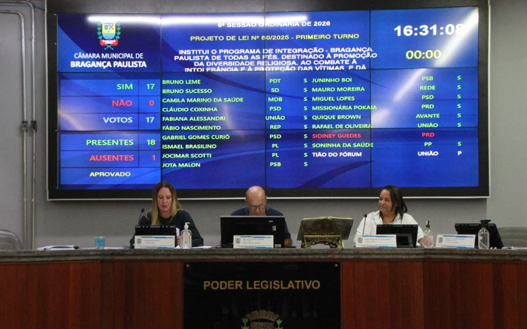 A Câmara Municipal de Bragança Paulista aprovou, em primeiro turno, o Projeto de Lei 80/2025, que propõe a criação do Programa de Integração – Bragança Paulista de Todas as Fés. A votação ocorreu durante a 6ª Sessão Ordinária do ano, realizada na terça-feira (10).