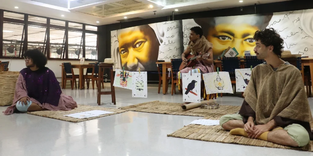 Na área de literatura, o Núcleo Ferruada conduz a atividade “Histórias do Nosso Quintal: Palavras d’água”, com mediação de leitura e narração de histórias.