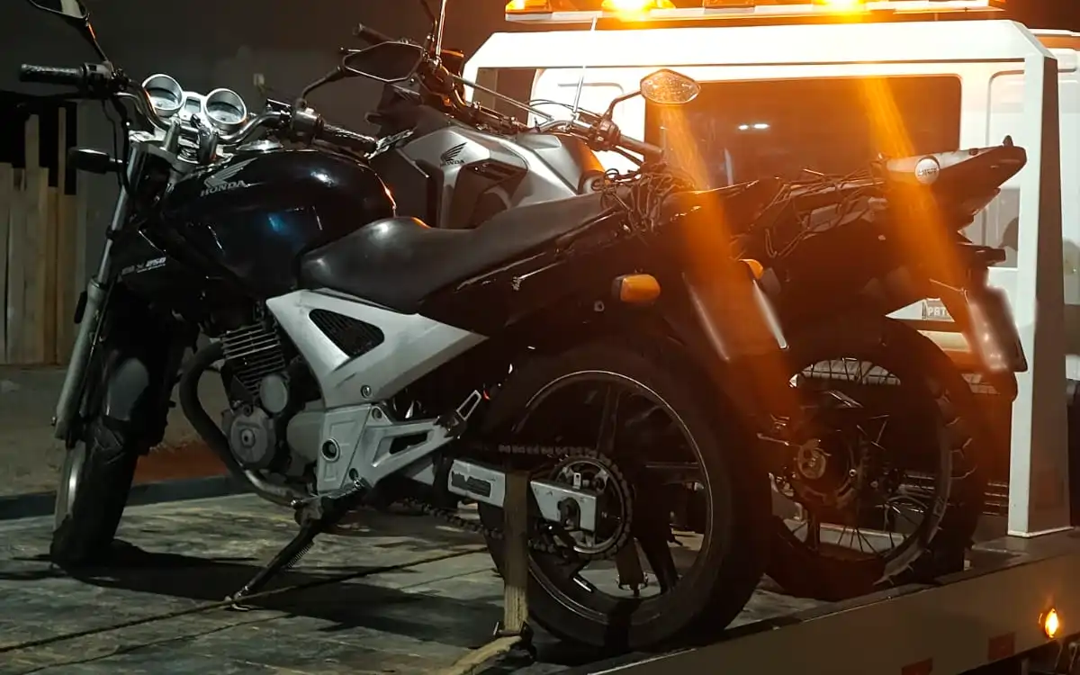 De acordo com a corporação, a equipe avistou duas motocicletas trafegando emparelhadas. Ao perceberem a presença policial, os condutores tentaram fugir, mas foram abordados em seguida.