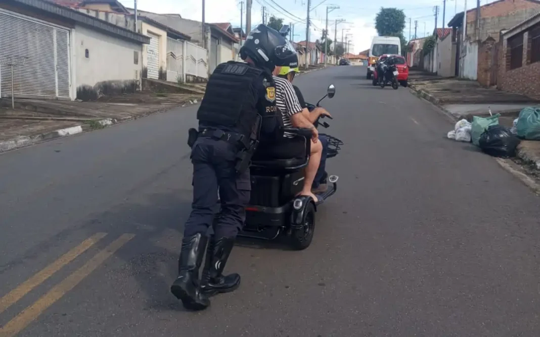 Durante patrulhamento de rotina, uma equipe da ROM prestou auxílio a um casal de idosos que enfrentava dificuldades com um triciclo elétrico sem bateria, em Bragança Paulista.